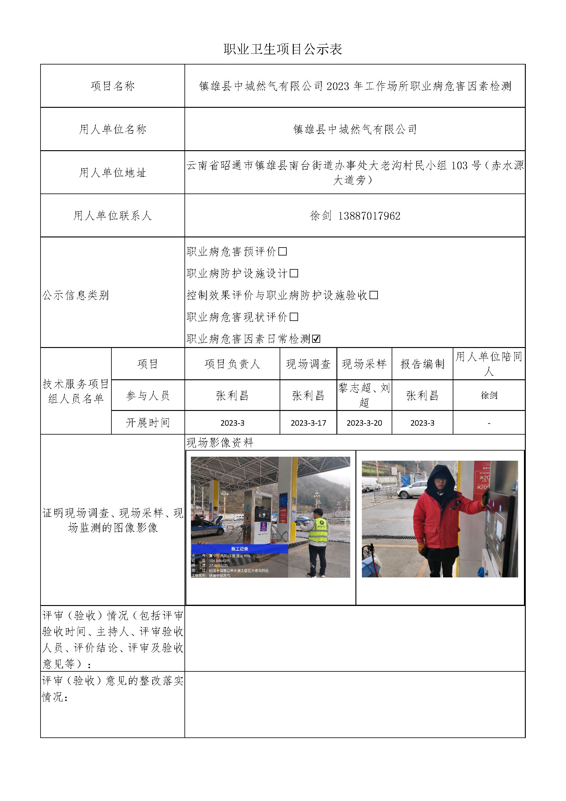 镇雄县中城然气有限公司2023年工作场所职业病危害因素检测