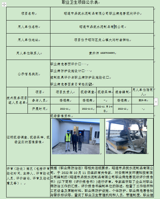 昭通市鼎筑水泥制品有限公司职业病危害现状评价