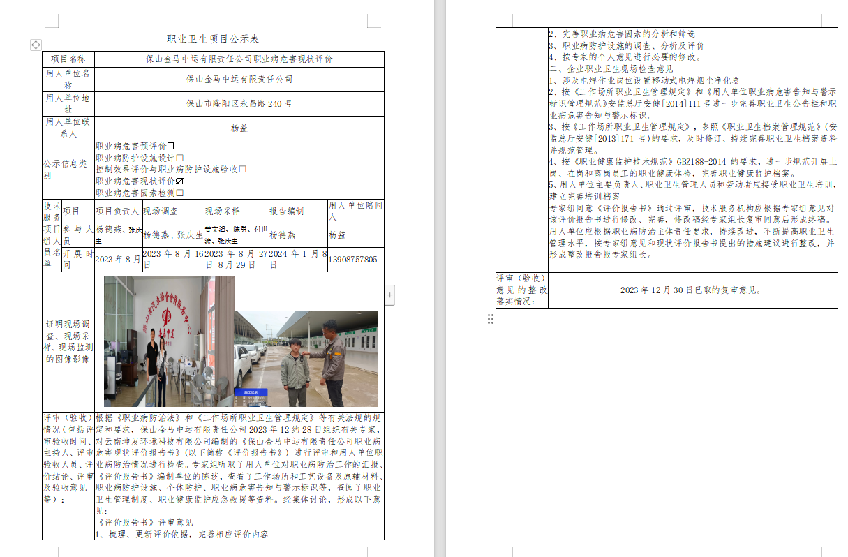 保山金马中运有限责任公司职业病危害现状评价-尊龙登录