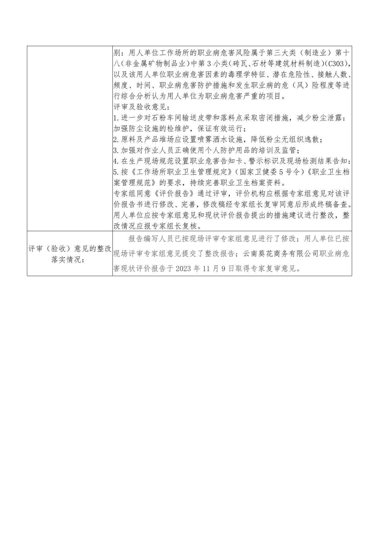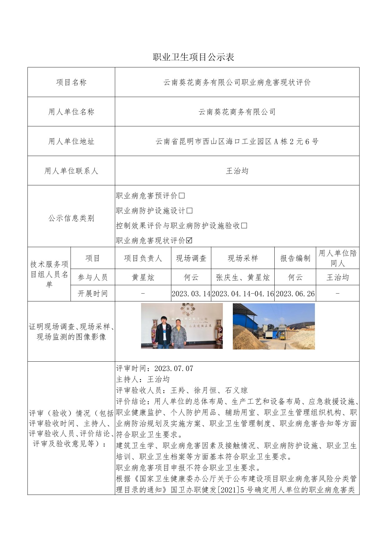 云南葵花商务有限公司职业病危害现状评价