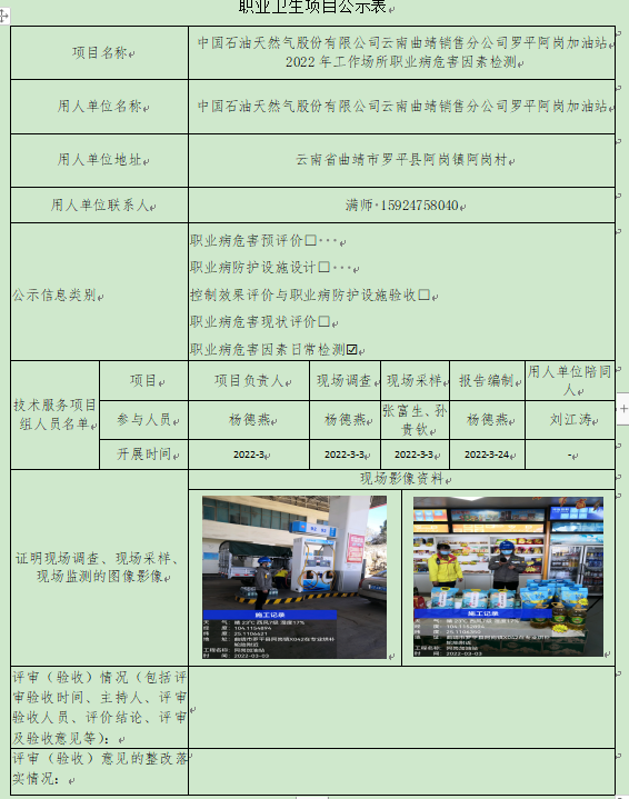 中国石油天然气股份有限公司云南曲靖销售分公司罗平阿岗加油站 2022年工作场所职业病危害因素检测
