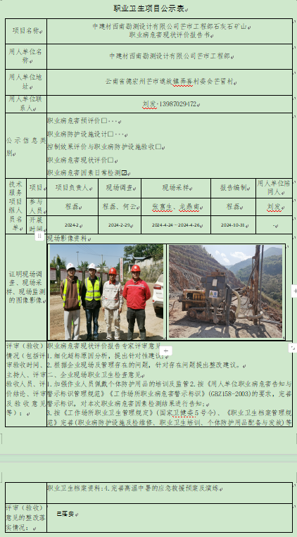 中建材西南勘测设计有限公司芒市工程部石灰石矿山 职业病危害现状评价报告书