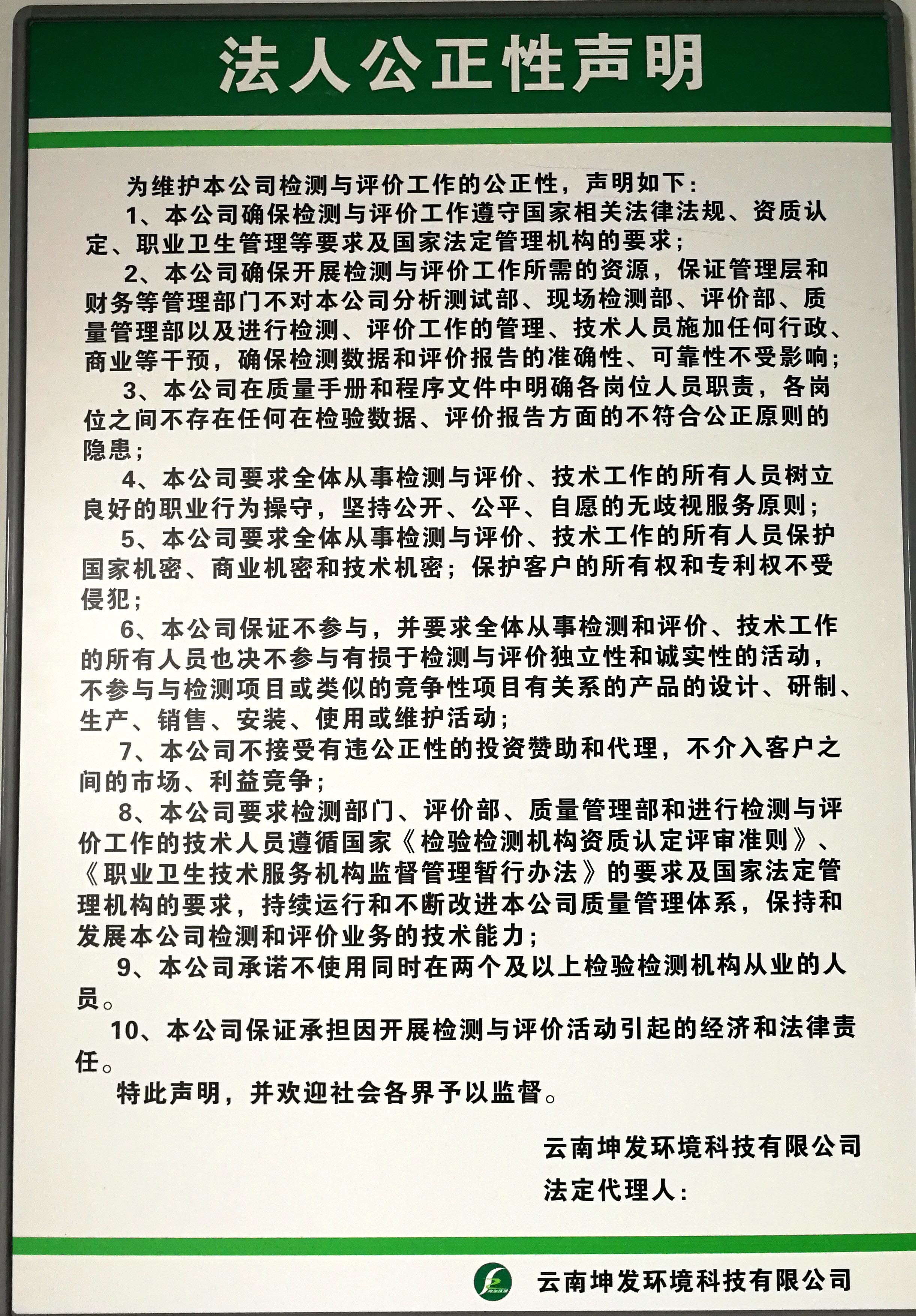 法人公正性声明-尊龙登录
