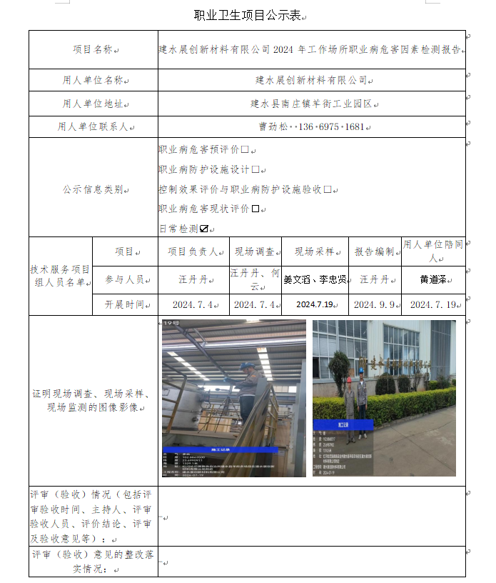 建水展创新材料有限公司2024年工作场所职业病危害因素检测报告
